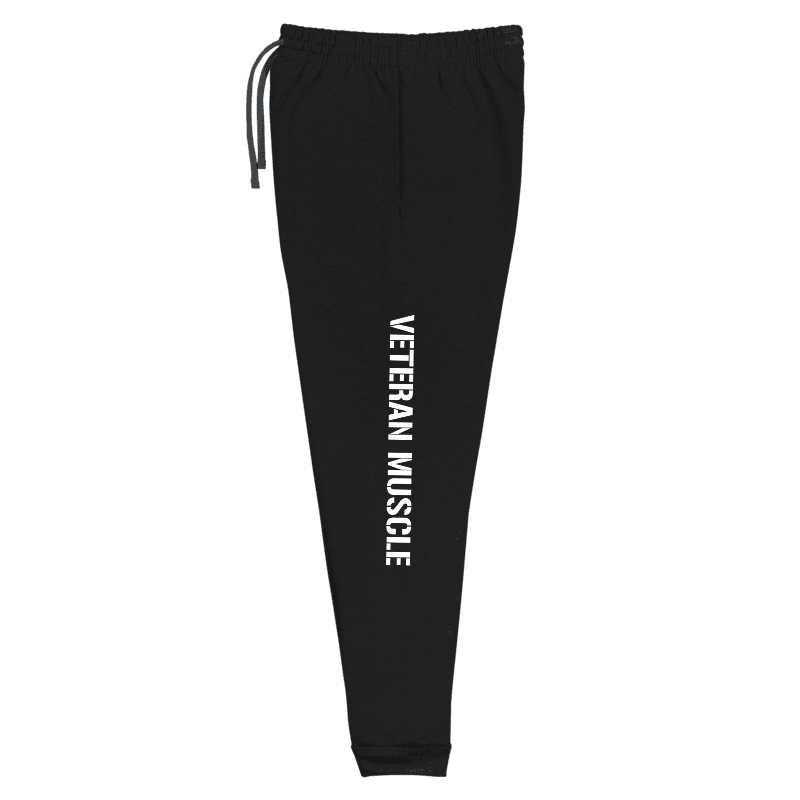 Veteran Muscle. Unisex joggers are built to last and be comfortable. Poly blended for fast wicking and daily use at the gym, on the road, or relaxing.
